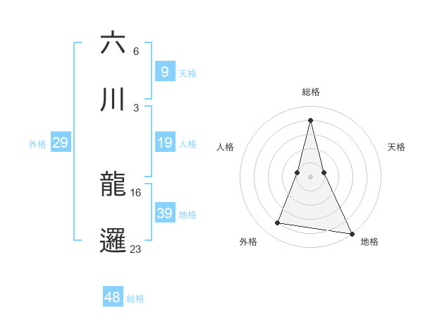 六川 龍邏さんを姓名の画数から五運を鑑定