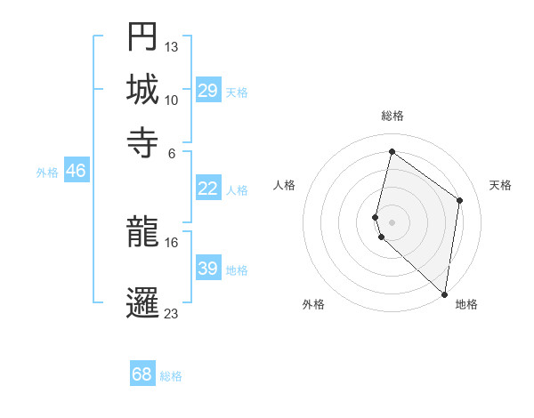 円城寺 龍邏さんの外格は46画の1点!
