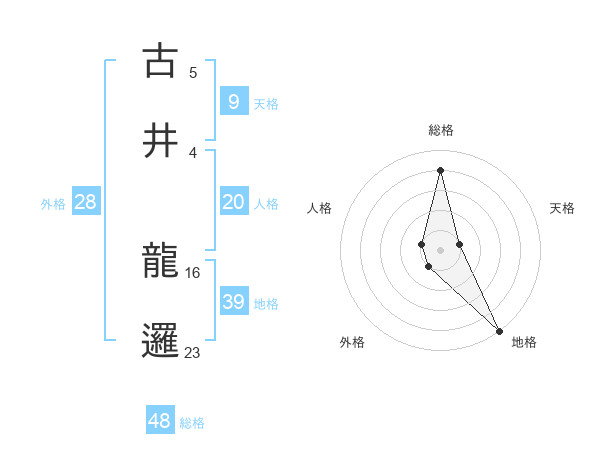 古井 龍邏さんの総格は48画の4点!