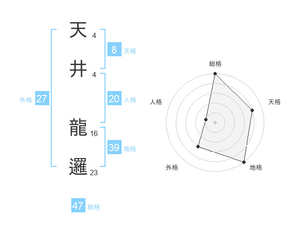 天井 龍邏さんを姓名の画数から五運を鑑定