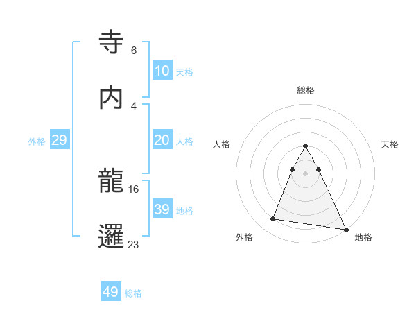 寺内 龍邏さんを姓名の画数から五運を鑑定