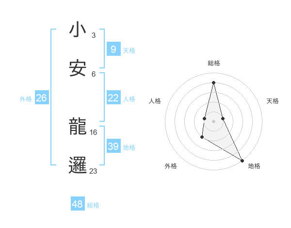 小安 龍邏さんの総格は48画の4点!