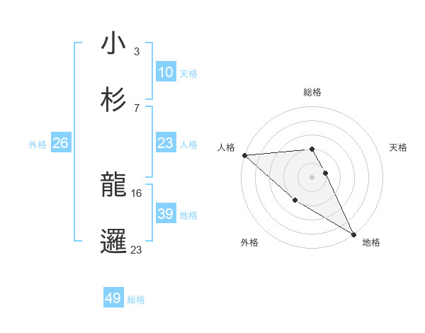 小杉 龍邏さんの総格は49画の2点!