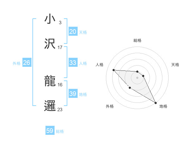 小沢 龍邏さんの天格は20画の1点!