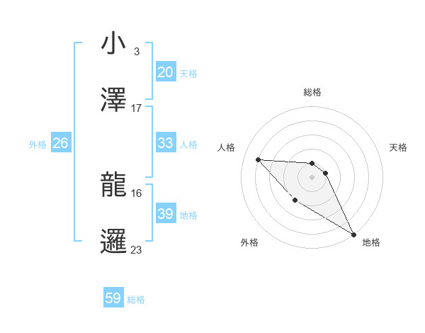 小澤 龍邏さんを姓名の画数から五運を鑑定