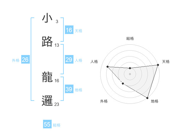 小路 龍邏さんの総格は55画の1点!