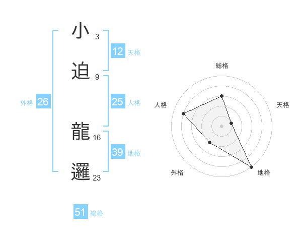 小迫 龍邏さんの総格は51画の3点!