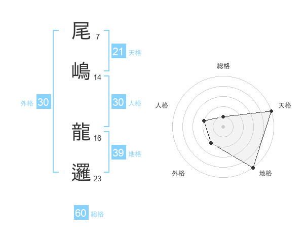尾嶋 龍邏さんの総格は60画の1点!