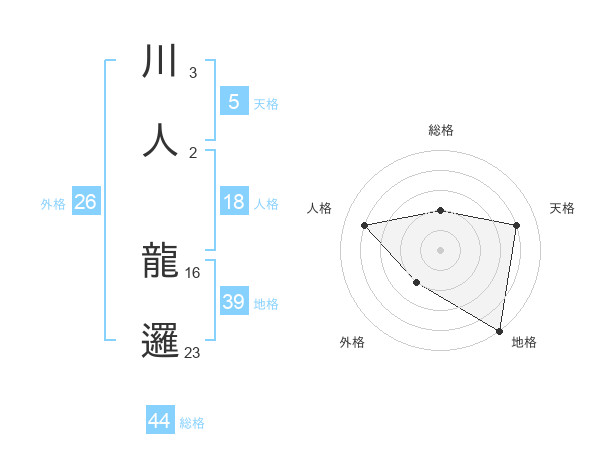 川人 龍邏さんの天格は5画の4点!