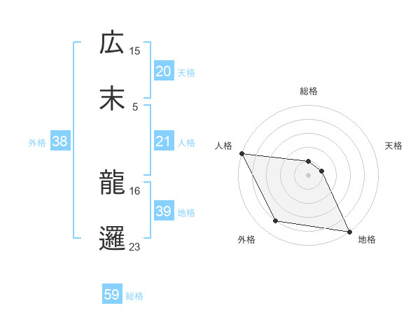 広末 龍邏さんの総格は59画の1点!