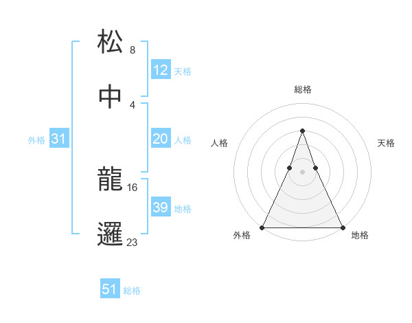 松中 龍邏さんの外格は31画の5点!