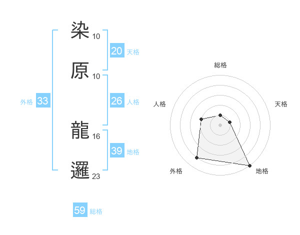 染原 龍邏さんの総格は59画の1点!