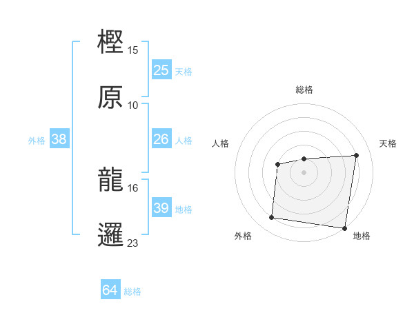 樫原 龍邏さんの総格は64画の1点!