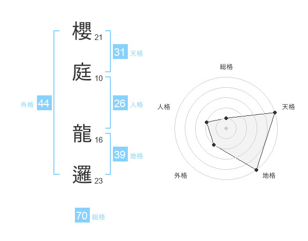 櫻庭 龍邏さんを姓名の画数から五運を鑑定
