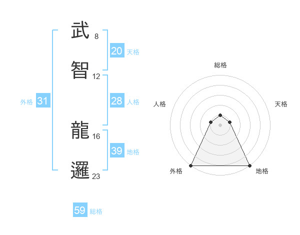 武智 龍邏さんを姓名の画数から五運を鑑定