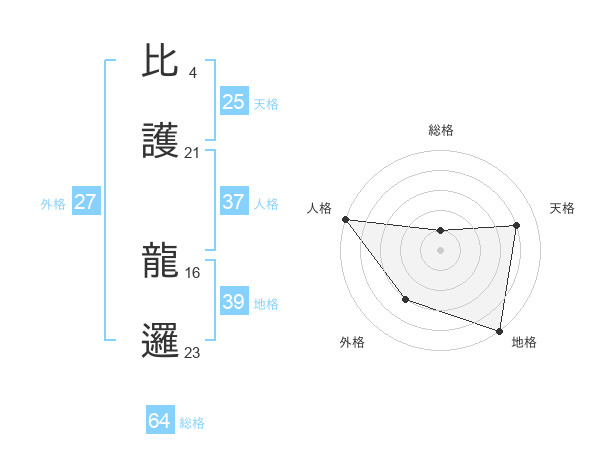 比護 龍邏さんの総格は64画の1点!