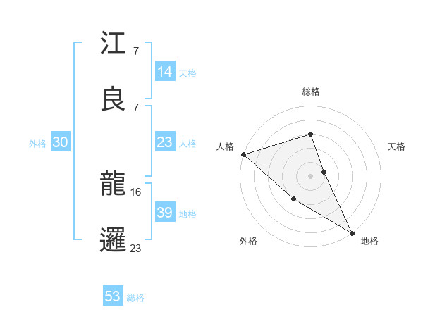 江良 龍邏さんの総格は53画の3点!