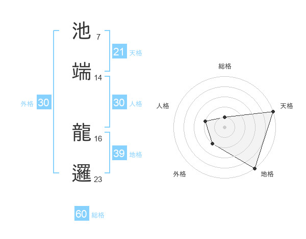 池端 龍邏さんの総格は60画の1点!