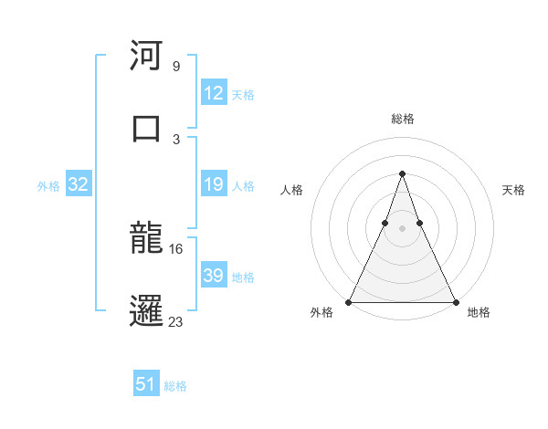 河口 龍邏さんの総格は51画の3点!