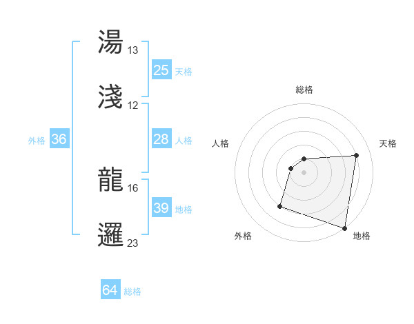 湯淺 龍邏さんの総格は64画の1点!