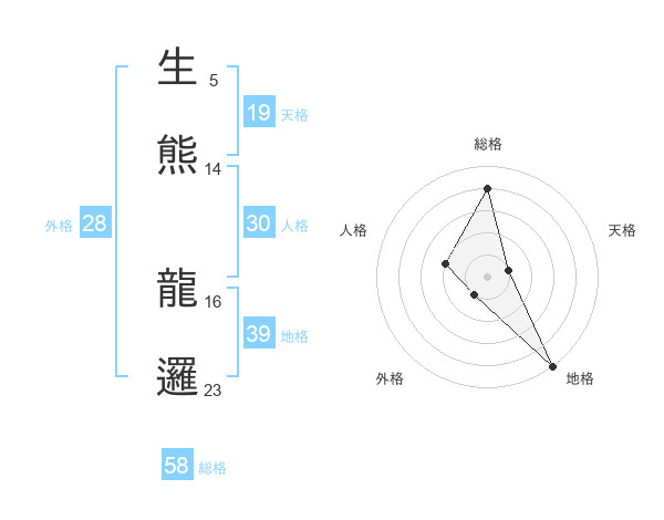 生熊 龍邏さんの総格は58画の4点!