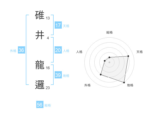 碓井 龍邏さんを姓名の画数から五運を鑑定