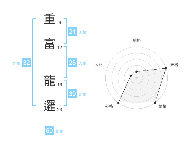 重富 龍邏さんの総格は60画の1点!