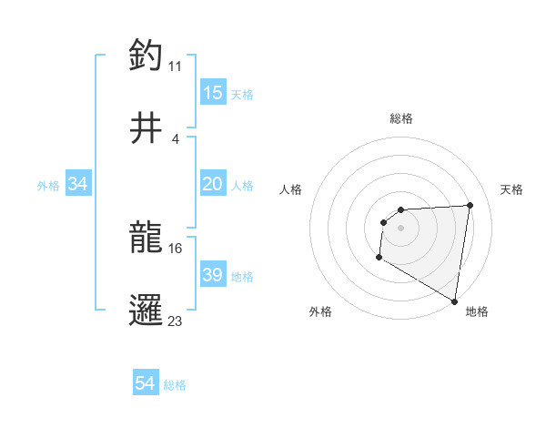 釣井 龍邏さんを姓名の画数から五運を鑑定