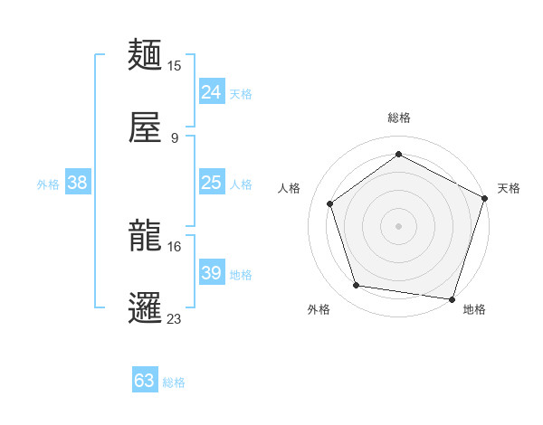 麺屋 龍邏さんの天格は24画の5点!