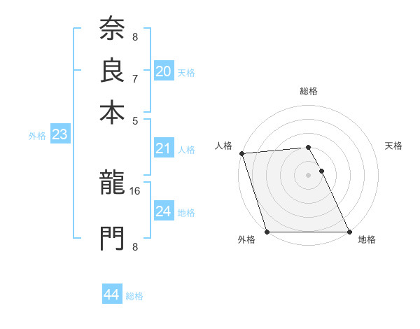 奈良本 龍門さんを姓名の画数から五運を鑑定