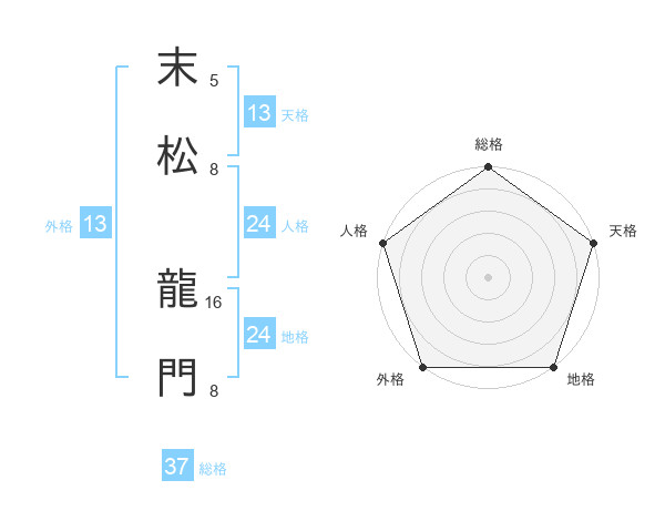 末松 龍門さんの総格は37画の5点!