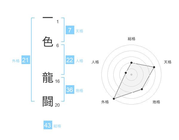 一色 龍闘さんを姓名の画数から五運を鑑定