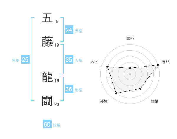 五藤 龍闘さんの天格は24画の5点!