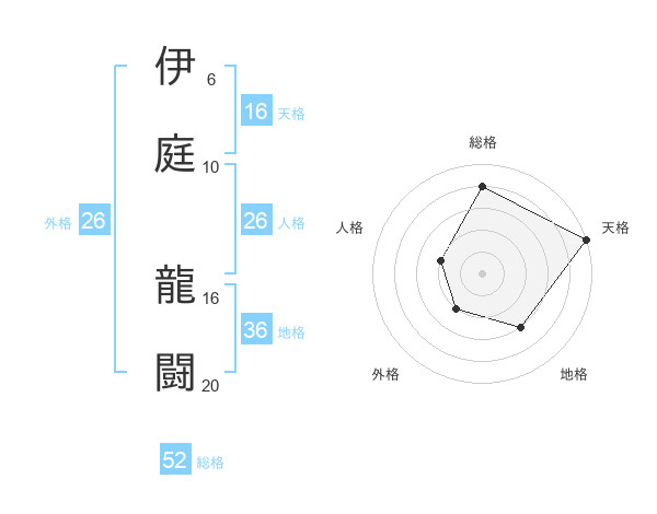 伊庭 龍闘さんの総格は52画の4点!