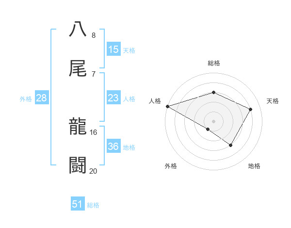 八尾 龍闘さんを姓名の画数から五運を鑑定