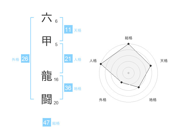 六甲 龍闘さんを姓名の画数から五運を鑑定