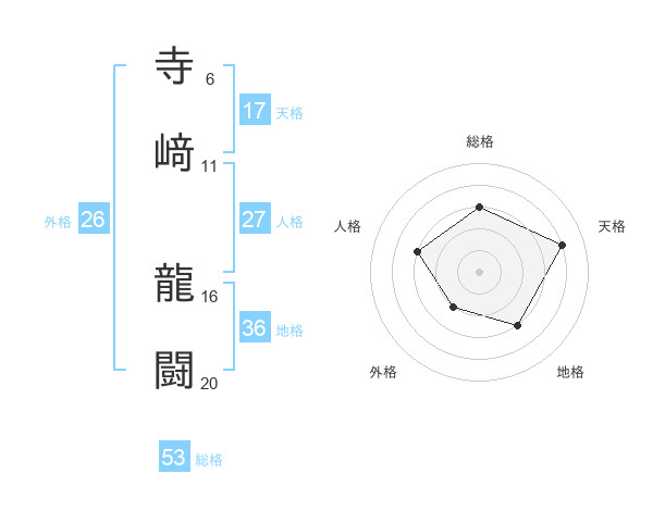 寺﨑 龍闘さんを姓名の画数から五運を鑑定