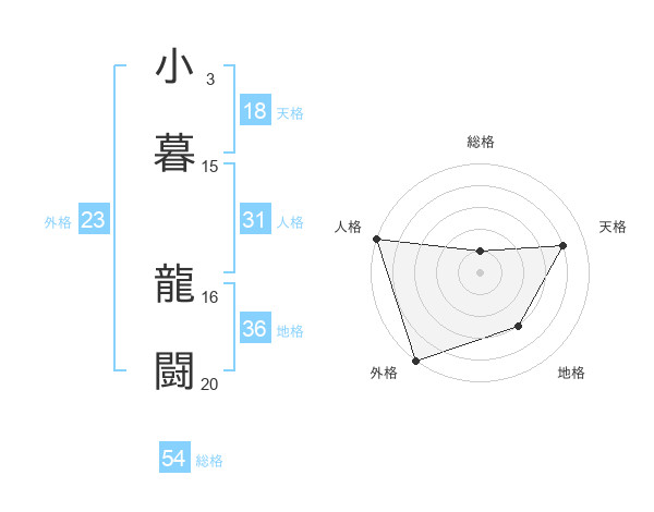小暮 龍闘さんの総格は54画の1点!