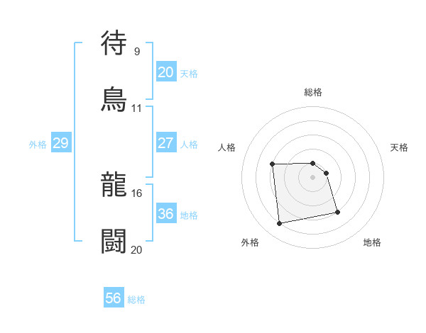 待鳥 龍闘さんの総格は56画の1点!