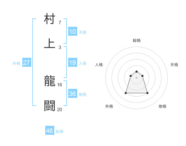 村上 龍闘さんの総格は46画の1点!