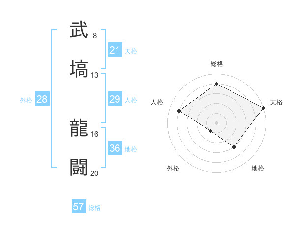 武塙 龍闘さんの総格は57画の4点!