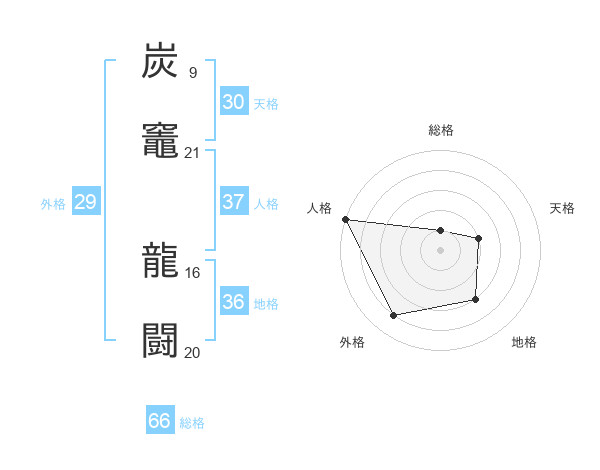 炭竈 龍闘さんを姓名の画数から五運を鑑定