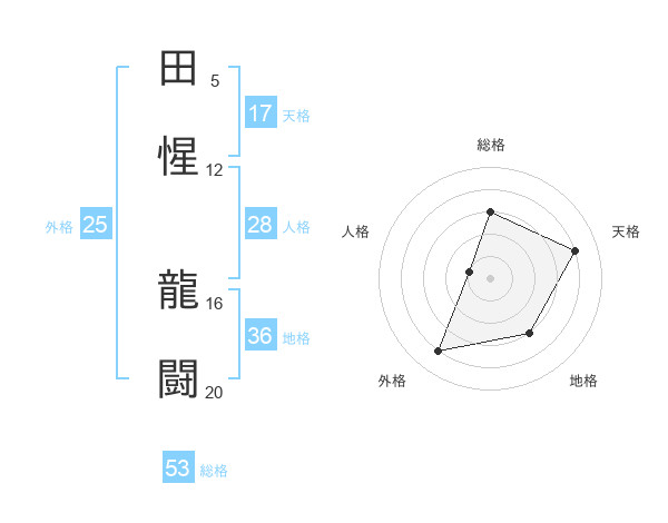 田惺 龍闘さんを姓名の画数から五運を鑑定