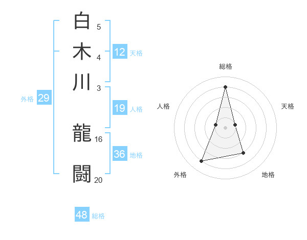 白木川 龍闘さんを姓名の画数から五運を鑑定
