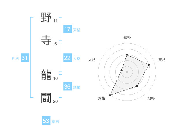 野寺 龍闘さんの外格は31画の5点!