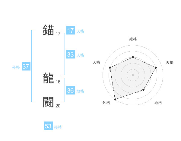 錨 龍闘さんの外格は37画の5点!