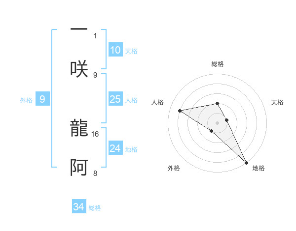一咲 龍阿さんを姓名の画数から五運を鑑定