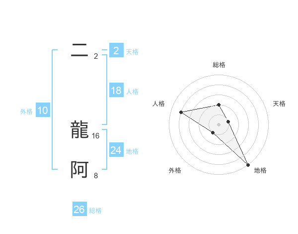 二 龍阿さんの総格は26画の2点!