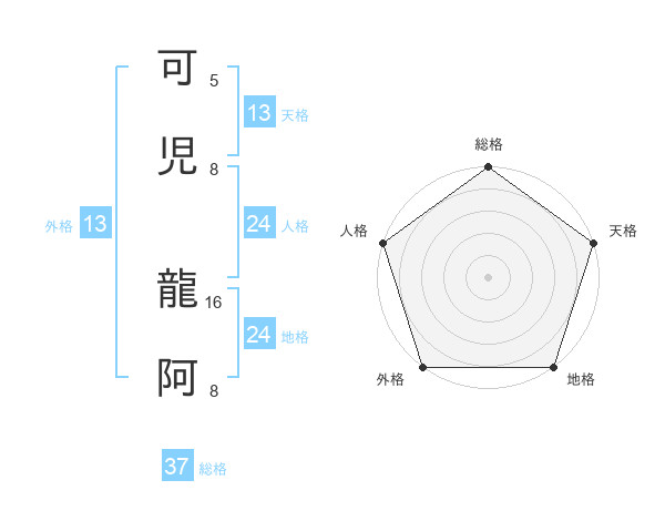 可児 龍阿さんの総格は37画の5点!