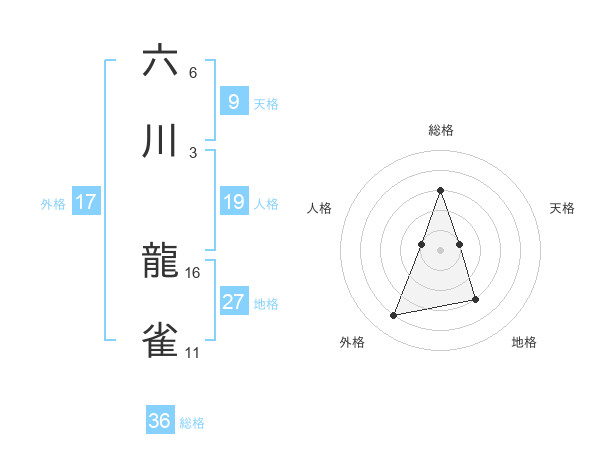 六川 龍雀さんを姓名の画数から五運を鑑定
